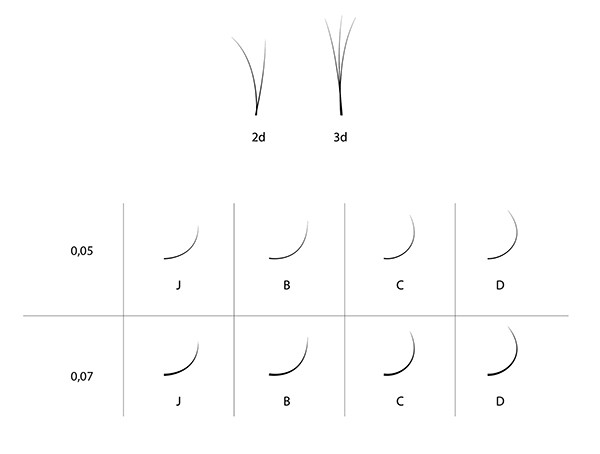 Готовые пучки для наращивания выпускаются в 4 изгибах - J, B, C, D
